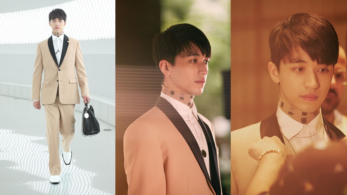 這場大秀由許魏洲擔任開場,他穿上印有卡爾於1981年所設計的「Karligraphy」草寫FF logo高領襯衣,一身駝色西裝帥氣開場,讓現場相當驚喜。