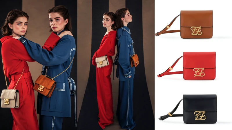FENDI 藉由引人入勝的手法,打造出充滿迷幻鏡面的場景,並且邀請到雙胞胎時尚網紅 Molly 與 Reese Blutstein 姐妹擔任主角,展現早春 KArligraphy 包款。Molly 與 Reese 這對姐妹花受到 Karl Lagerfeld 在1981年所設計出之 雙logo 圖案的啟發,運用肢體生動表現出兩個上下倒置且別無二致的斜體「F」字母,呼應包款的趣味之處。