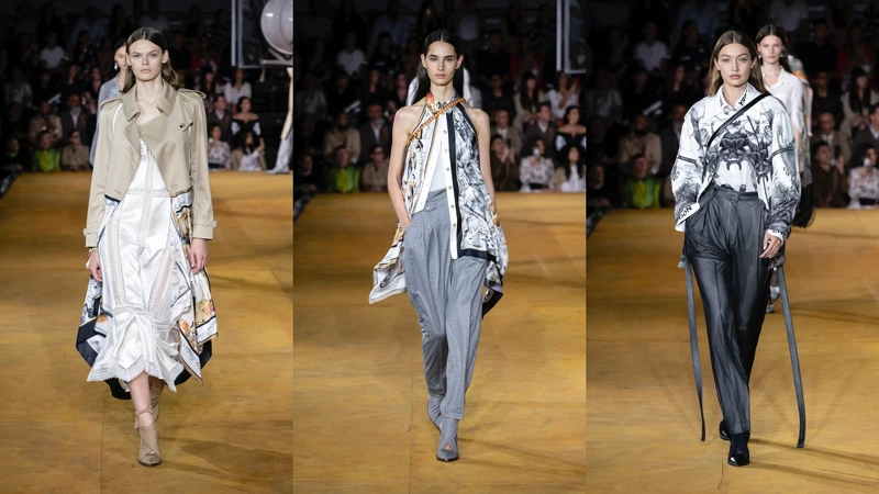 另外大量穿梭於系列中的印花絲巾也紛紛以不同形式亮相!好比與風衣拼接而成的異材質混搭設計、以兩條絲巾打板縫製的削肩襯衫…除了傳遞著品牌不敗的經典精神,也為整替佐上輕飄的迷人韻味。