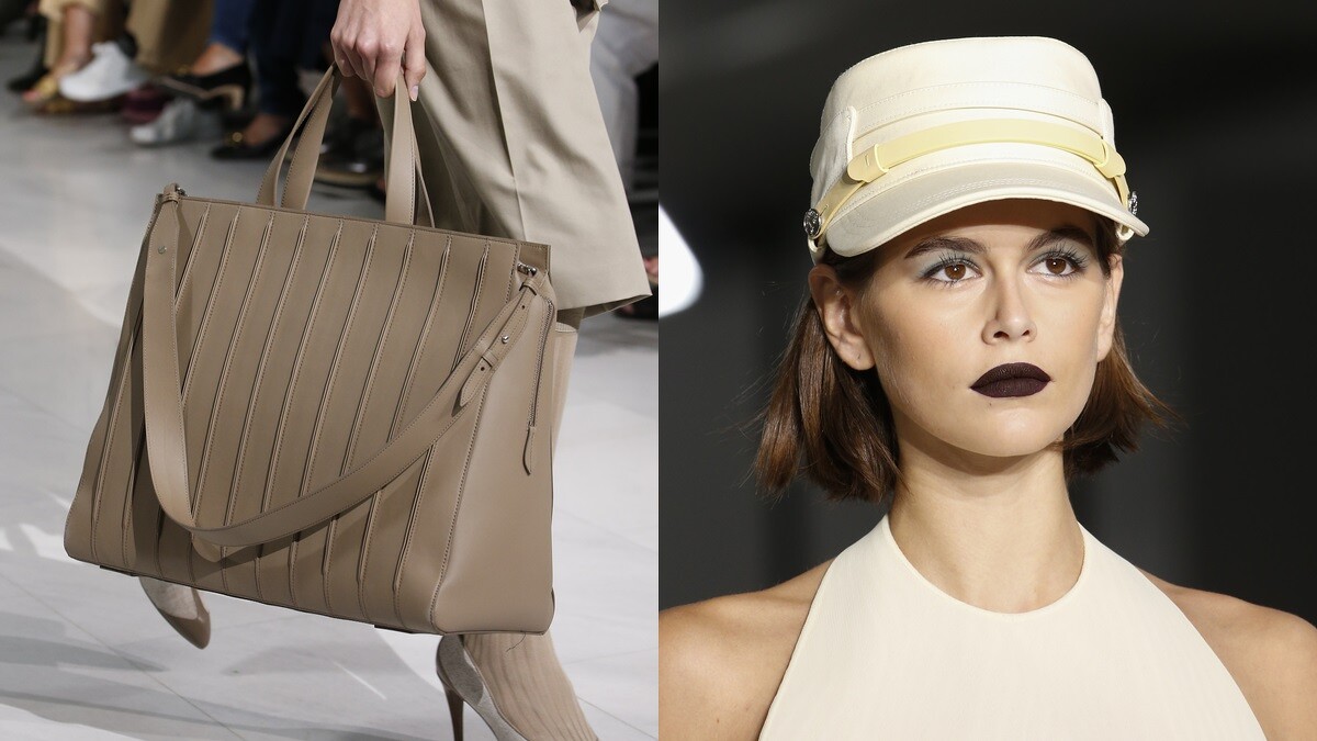 配件部分就屬大尺寸的Whitney Bag最吸睛,結合不同材質拼接而成,絕對是明年春夏必入手的包款之一。另外,馬術帽也是秀上亮點,搭配各種粉嫩色系,為女龐德增添一絲柔美氣息。