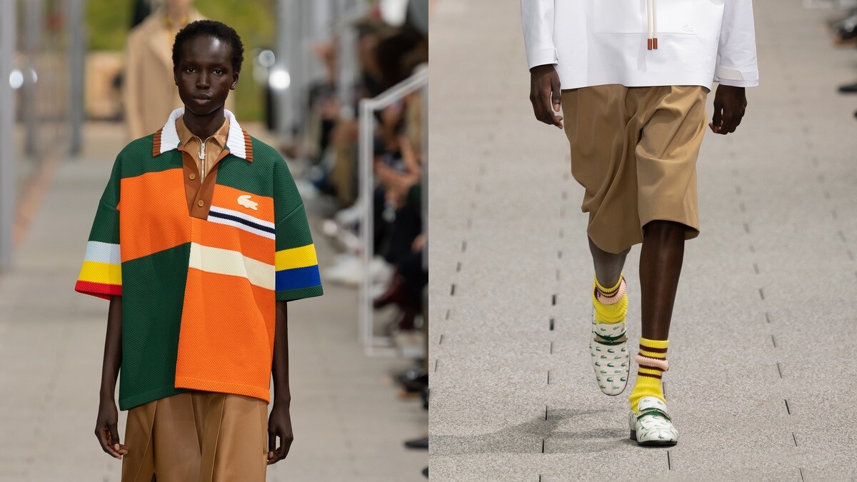 2020春夏系列將經典的網球及高爾夫球裝束賦予新生命,包含John F. Kennedy Jr. (小約翰甘迺迪) 帶去參加夏令營的Lacoste Polo衫,還有品牌創辦人Rene Lacoste 與優雅的傳奇網球冠軍Suzanne Lenglen一同出遊的裝扮,保留復古懷舊氣息透過重新剪裁後,體現新時代活潑俏皮的輪廓,從中也反映創意總監Louise Trotter一向的優雅運動風格。