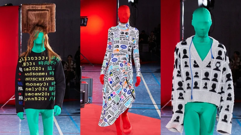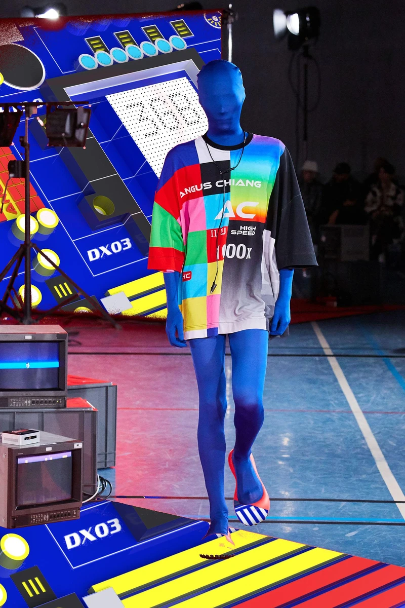 ANGUS CHIANG 2020秋冬系列以藍色胎衣閉幕,虛擬實境的背景是PTT八卦板上的內容,他本人接受《Marie Claire》訪問時透露,「留言全都是真實的,我們只是換了一個帳號」,用幽默的方式直面過往所有的鄉民狠毒評論。