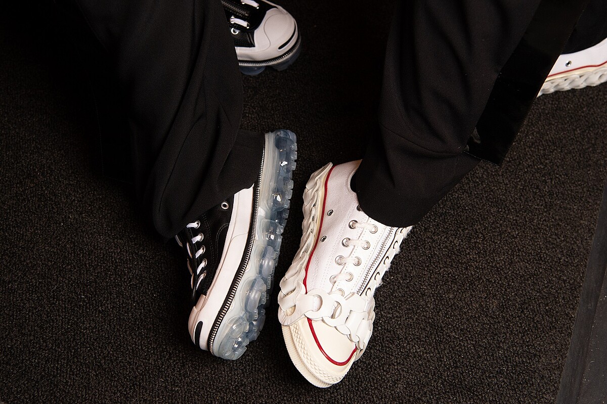 另外也,將經典的CONVERSE帆布鞋重新Remake,用服裝製程中的剩料加工,如鎖鏈等,讓代表街頭風格的CONVERSE更具反叛個性。