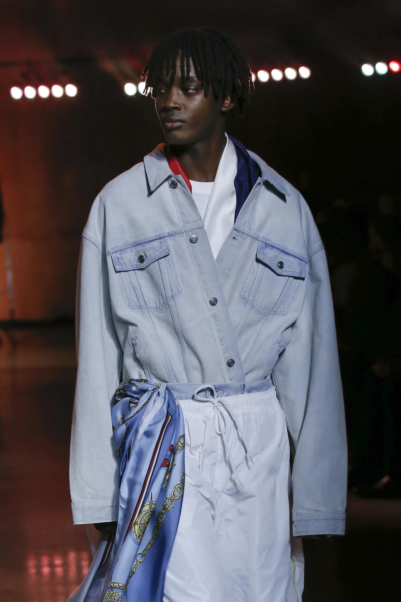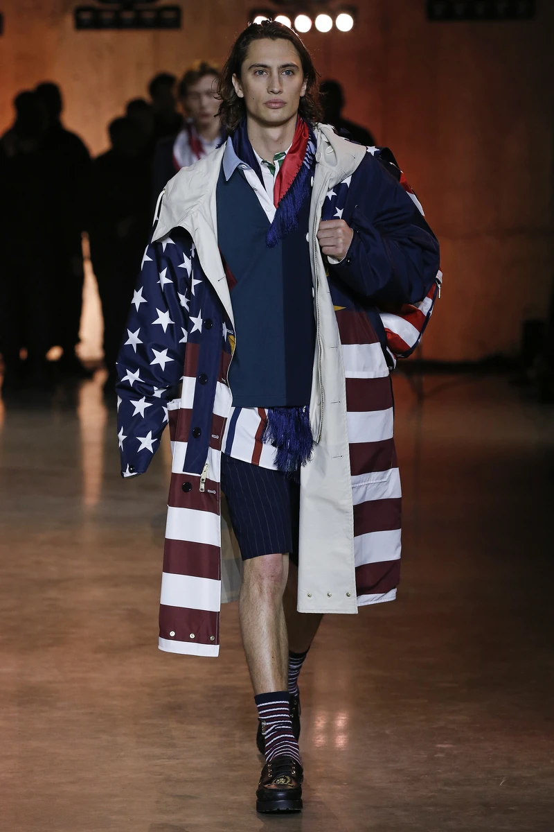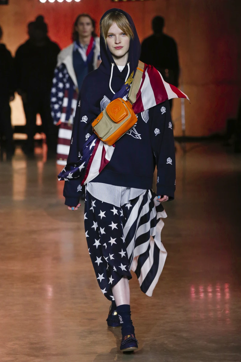 2020春季系列從開場就註定是個活力十足的街頭Style,結合軍裝元素改造成寬鬆的潮流風格,注入招牌的美式街頭塗鴉元素,交織出年輕街頭的活潑韻味。下半場的丹寧、紅、白、藍色彩與美國國旗元素,帶出TOMMY HILFIGER典型的美式風格,不規則的裙襬飛揚、風衣外套,如同舞動美國國旗一般,將秀場氣氛漸漸帶至高昂情緒。