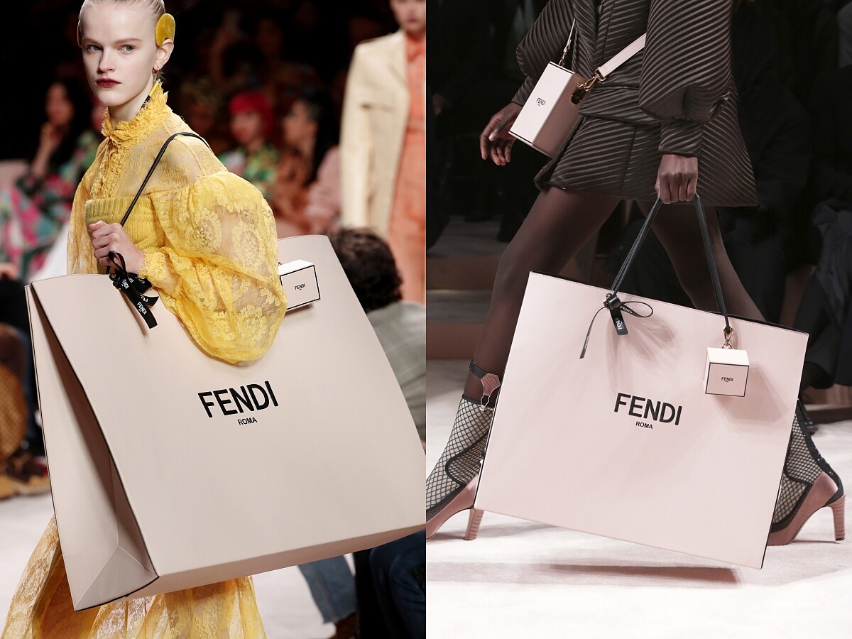 Silvia Venturini Fendi最拿手的配件設計,在男裝秀首先現蹤的FENDI皮革購物袋,當然也要出現在女裝秀現場。超大的購物袋及同款小箱包款,直接體現女人購物狂的瘋狂面向!看到這,想必已經直接融化了吧~