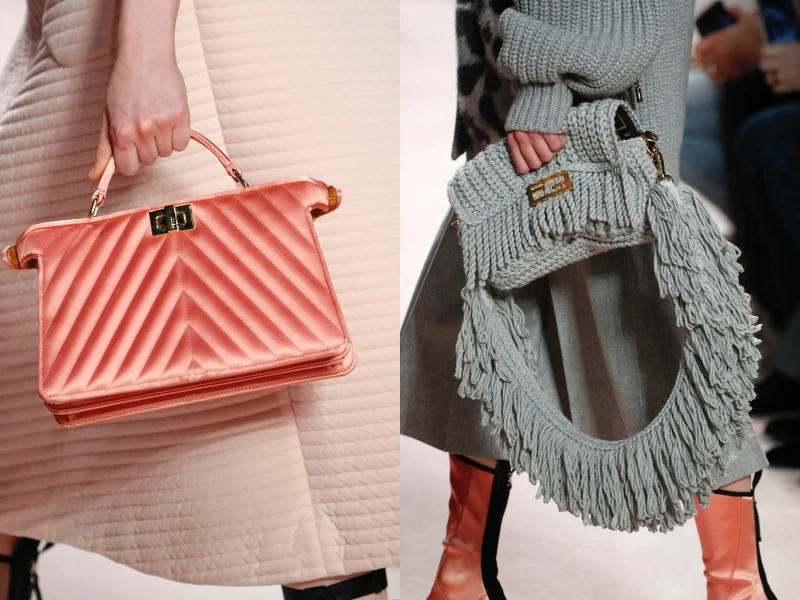 Silvia Venturini Fendi最拿手的配件設計,在男裝秀首先現蹤的FENDI皮革購物袋,當然也要出現在女裝秀現場。超大的購物袋及同款小箱包款,直接體現女人購物狂的瘋狂面向!看到這,想必已經直接融化了吧~