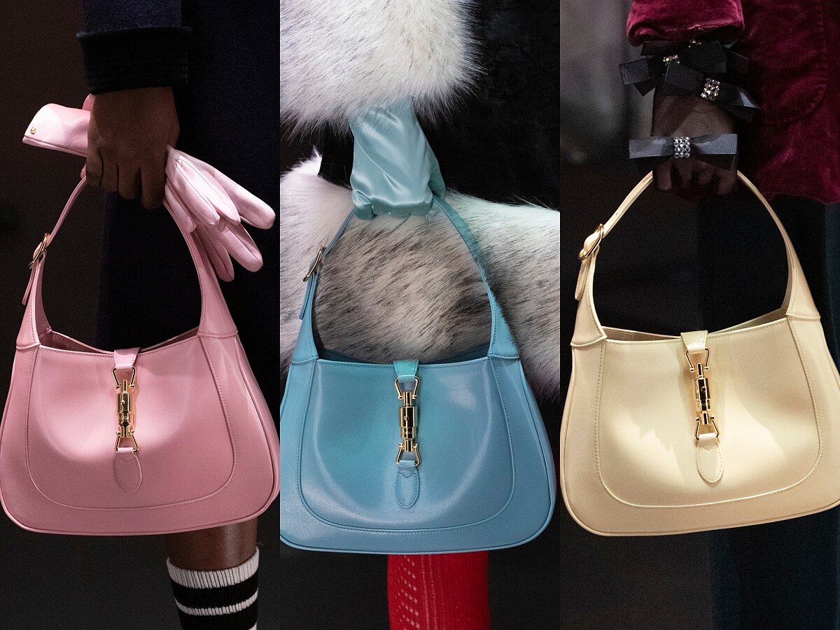 去年起推出葛麗絲凱莉印花系列時,即在醞釀「賈姬包」Jackie Bag的回歸。如今正式出現在伸展台上,短肩帶剛好符合漸漸回歸的「腋下包」風潮!馬卡龍色系,讓妳的腋下也能很俏皮~