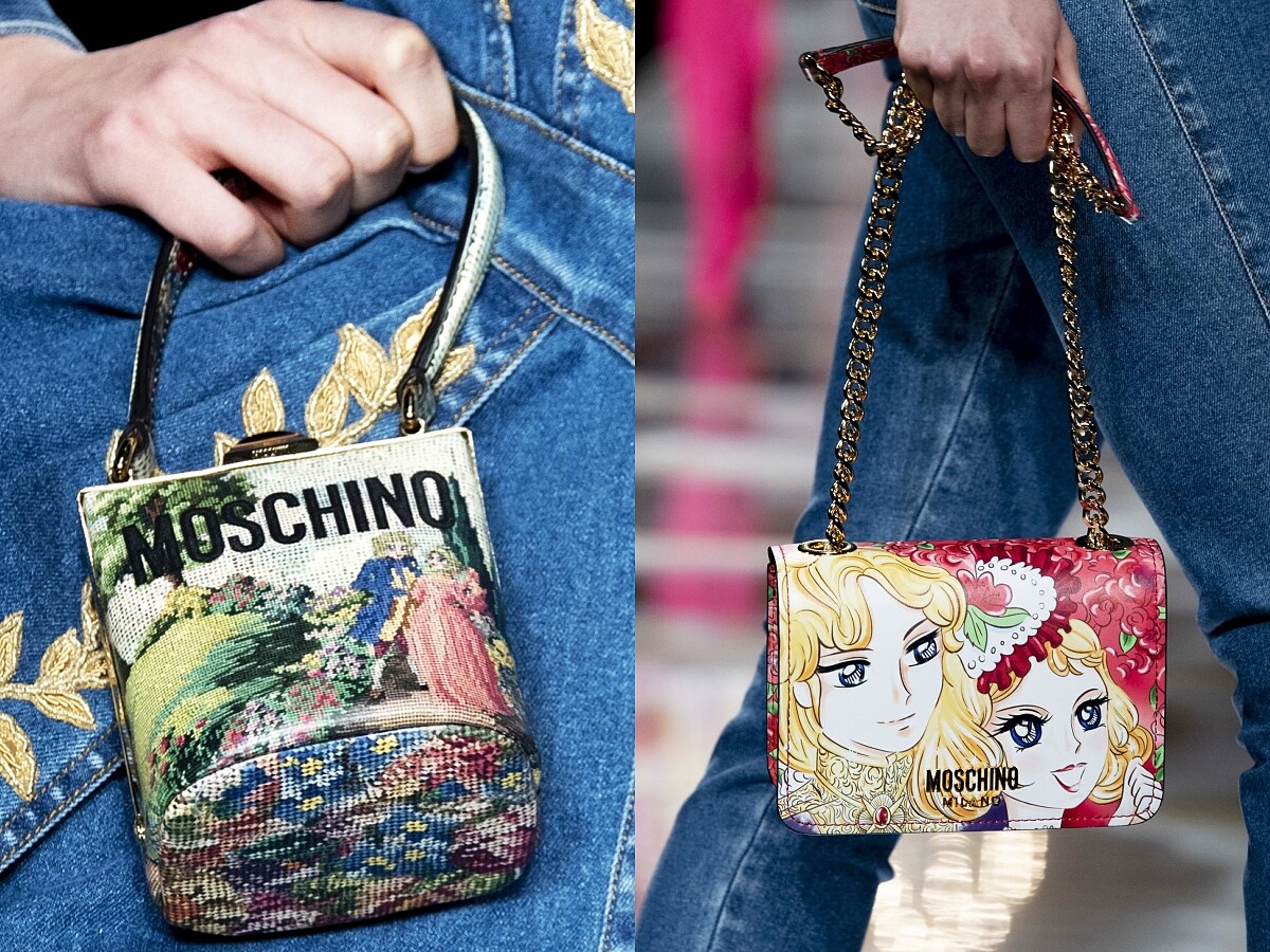 MOSCHINO本季取經法國歷史上的經典人物:瑪麗安東尼皇后,除了把當時流行的服裝廓形重新詮釋外,更找來以凡爾賽宮廷為背景的日本知名動漫《凡爾賽玫瑰》聯手,運用動漫中的場景與角色作為單品上最吸睛的焦點。不管是如刺繡材質的圖案,亦或者是數位印刷的圖騰,都讓這系列顯得相當有趣,吸睛度百分百。