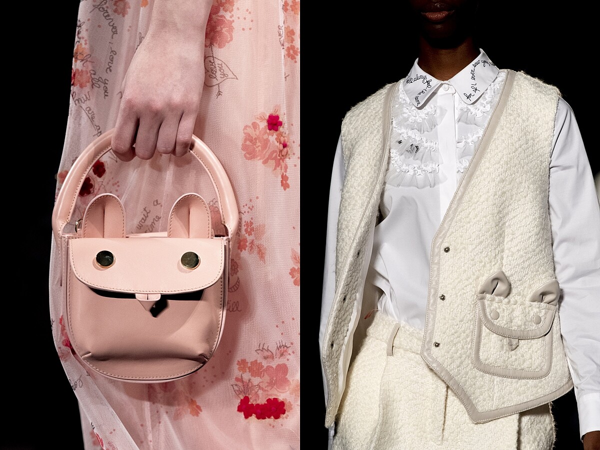 喜歡可愛風格的人,絕對不能不認識義大利品牌Vivetta,喜愛在領片上大做文章的Vivetta,常常會有令人眼睛一亮的驚喜之筆現蹤。本季以「貓咪」為主體,在服裝口袋上、手袋及鞋款上,均出現貓咪頭,小巧的貓耳,特別吸睛。另外,包含愛心與蝴蝶結元素等,都是少女會愛的基本款呀!