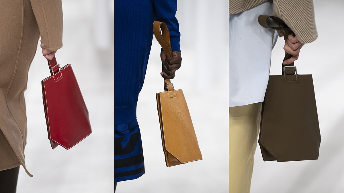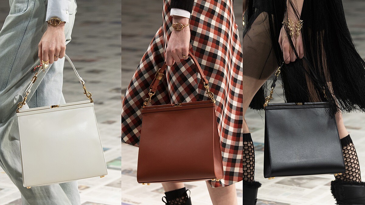 設計師Clare Waight Keller將2020秋冬系列回歸品牌經典色系,在大尺寸手袋的款式上以皮革編織及抓皺效果,隨興一拿都非常適合帥氣有型的女孩們,此外絲巾手袋也是秀上醒目的焦點,大膽的將印花絲巾包裹著皮革手袋,材質對比讓人感覺剛柔並濟別具特色。