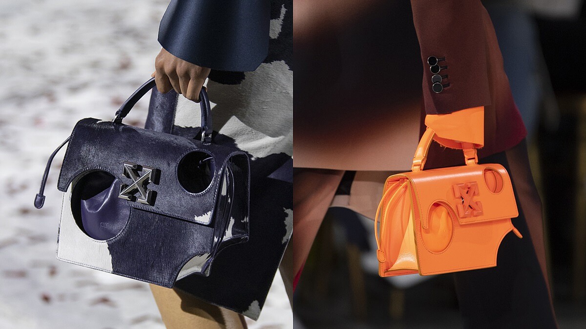 破天荒邀請Hadid家母女三人組同台走秀的Off-White,絕對是巴黎時裝週具熱度的大秀之一。整場秀延續20春夏的縷空設計,並加入各種印花圖騰,像是這款有著Off-White Logo的方包,不同於一般手袋的形狀,創意總監Virgil Abloh將包包形狀作了調整,就像裁切缺了一個角相當吸睛。