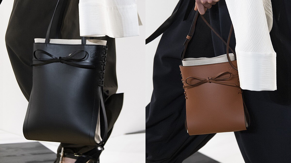 將品牌精湛的皮革工藝再運用,秋冬系列也推出另一款新手袋,採用細緻皮革製成,側邊有著標誌性的綁帶設計,包包正前方以蝴蝶結作為裝飾,分別有手提、斜揹兩種包款。
