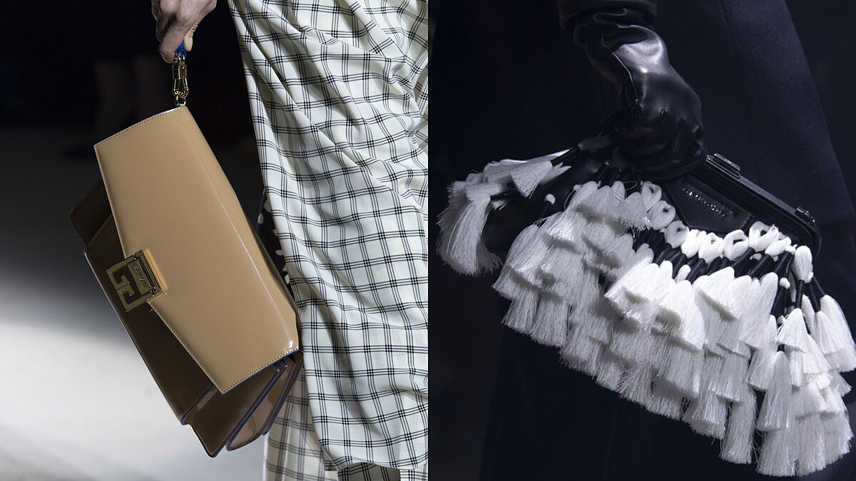 本季可以看到手拿包風潮漸長,就連Givenchy也注入復古風推出手拿包款,其中具有中性霸氣的信封式手拿包,在模特兒手中愛拿不拿的模樣成為亮點。 GV3包款則以光滑的皮革作為主要材質,搭配鈷藍色或黑色的邊膠細節,對於上班族來說是很好搭配的單品。不能錯過的還有這個流蘇手拿包,柔美中不失個性,流蘇隨著手擺動時增添了動感美態。
