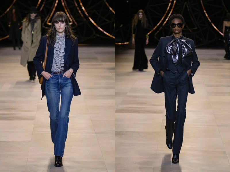 Hedi Simane以「搖滾硬核派的布爾喬亞」為主題,延續他對70年代巴黎資產階級著裝的探索。在2019秋冬帶出這時代巴黎資產階級女人的知性優雅,2020春夏的度假愜意,再到本季搖滾硬派風格,他一步步將這時期的巴黎資產階級女子,勾勒得更加立體。
