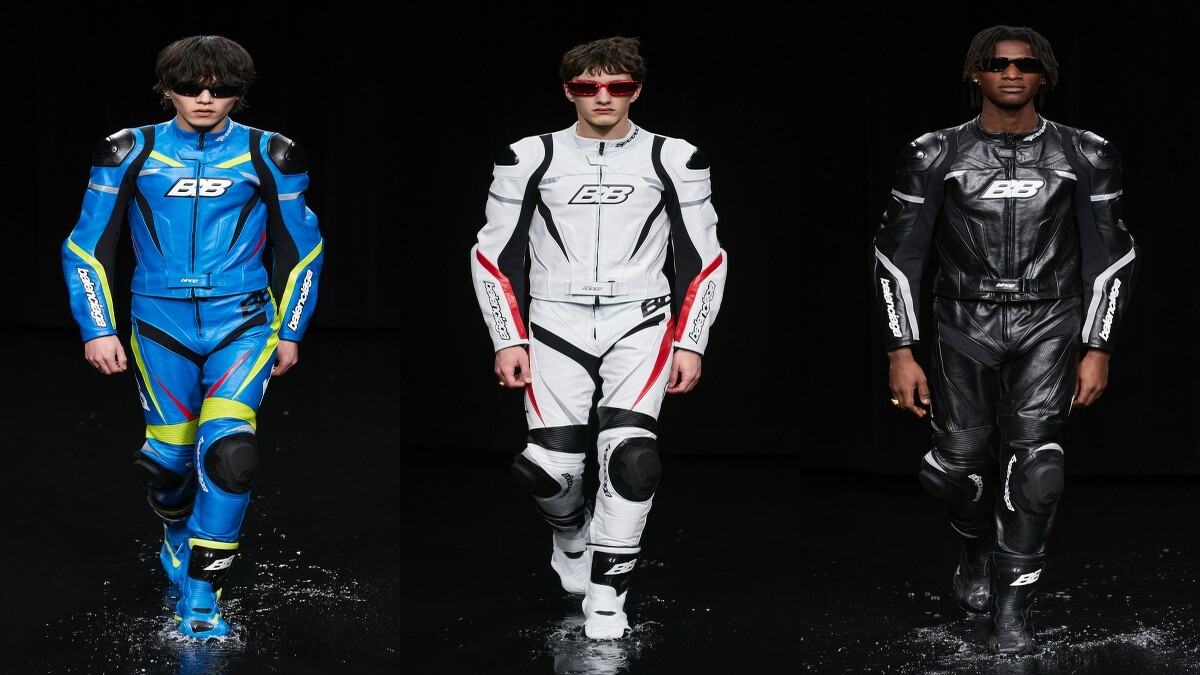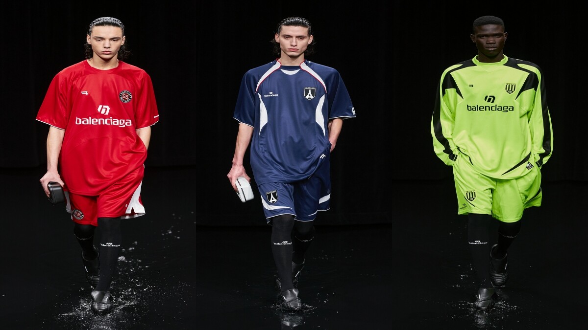 高街運動風格在系列中相當具象化的呈現,機車裝、足球隊明顯融入。當穿著BALENCIAGA隊服的重機隊員與足球隊員,踏水而來時,帥爆模樣絕對不容小覷。