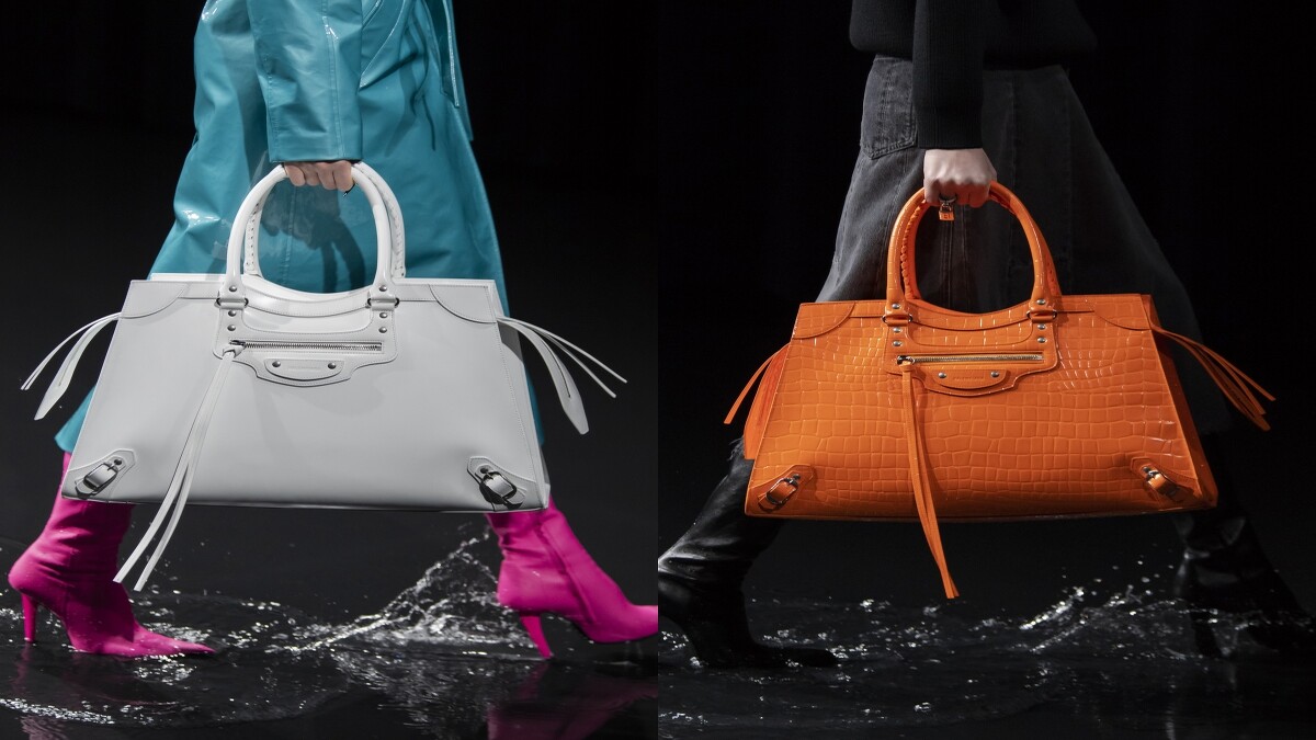 本季他讓模特兒們涉水而來,在水花四濺中呈現新作,也呼應時尚圈如今「復興老包」的潮流,將千禧年爆紅的「機車包」(Motorcycle Bag)重新帶回伸展台,作為20周年紀念,改款後的硬挺箱型機車包,新名字叫做Neo Classic,包準是下季狠角色。