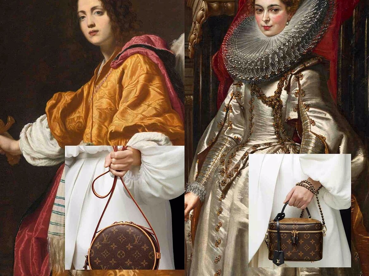 正式開秀前,按照慣例女裝創意總監Nicolas Ghesquière已先在IG拋出線索,幾款近年經典的包款,小箱包Petite Malle、軟式帽箱包Petite Boîte Chapeau、TWIST鏈帶包再度登場,甚至成為油畫作品中歷史角色的配件,相當具有藝術氛圍!最讓人又驚又喜的是,其中一款Monogram「老花」被改造成全新樣貌,原本的星星、鑽石、花朵、LV字樣全被融入菱形鑽石中,成為鑽石花、鑽石星、鑽石LV的圖案,更結合了LV首間工作室成立的歷史,融入1854的字樣,有一種回到當年初心的寓意。看完線索後,是不是更加期待了呢?