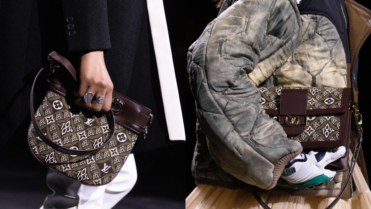 至於秀前丟出的「改造老花」線索,在秀上果然看見它們的蹤影,Monogram經典的鑽石圖案中間加入1945創歷年份的字樣,小花、星星、LV等也被融入鑽石中間。帶點新意的「進化版老花」,實際上也對本季時間歷程頗有呼應。