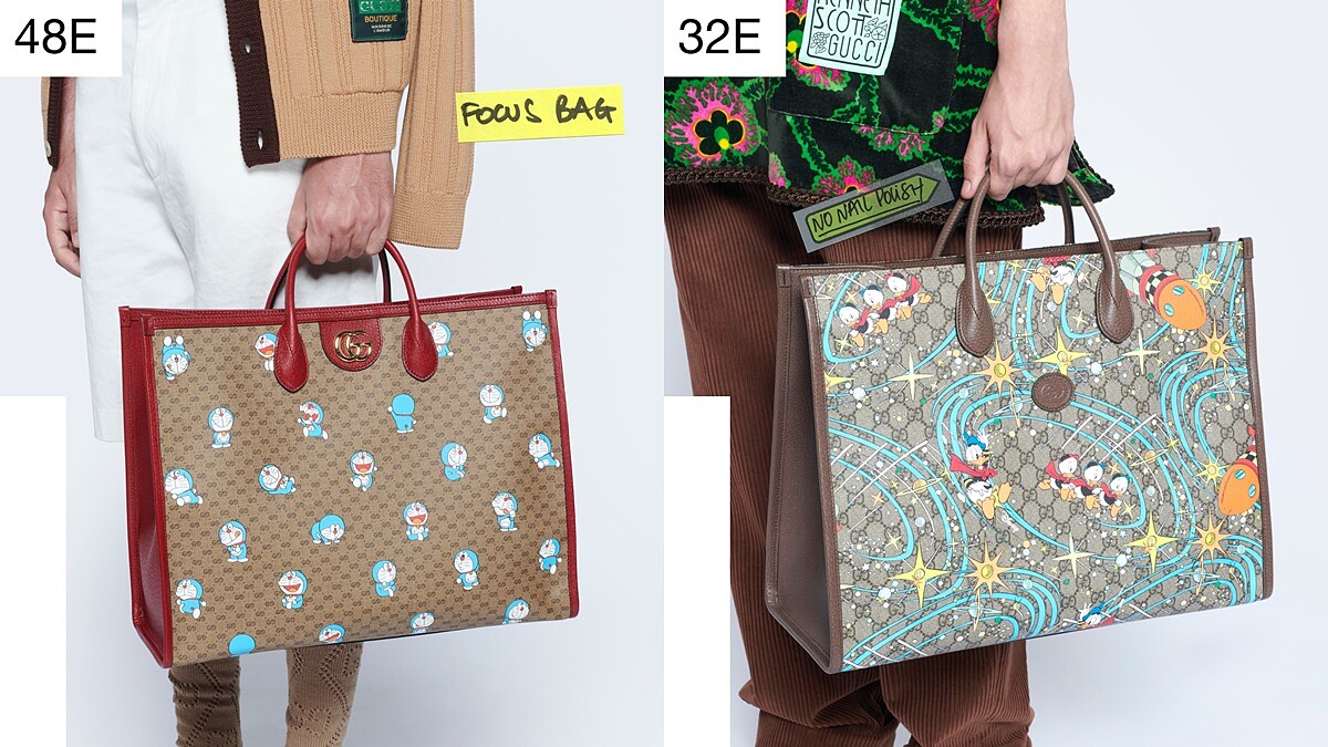 2020 Epilogue終曲系列延續創意總監Alessandro Michele一貫的作風,復古叛逆、大膽前衛風格以Alessandro Michele的方式呈現於服裝、包包、鞋履以及小配件系列,當然也包含女裝男穿、男裝女穿的服裝款式,特別的是,此次童心未泯的他再次把日本超人氣卡通人物哆啦A夢、迪士尼人氣角色唐老鴨找來,壓印在GG Logo帆布托特袋上。而2020秋冬系列強勢回歸的賈姬包,在終曲系列推出更大尺寸並有長肩帶的設計。