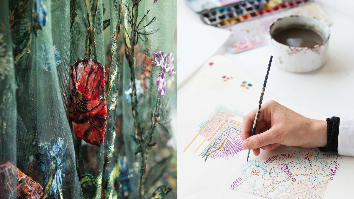 此外,Maria Grazia Chiuri也發揮創意巧思,將這些光雕藝術上的精緻圖騰轉化為系列中的彩繪印刷和珍貴刺繡,又或者在裙子後方繡上地區銘箴「Amando e Cantando(愛與歌唱)」,藉以讚頌普利亞與當地居民凝聚的歡樂慶典氛圍。另外像是Dior標幟性的Bar Jacket、和迪奧先生呼應的經典Miss Dior花卉刺繡洋裝…都在搭上受植物學家Giovanni Battista Ferrari於1638年出版的著作《De Florum Cultura》中的插圖啟發,與Pietro Ruffo創作五幅帶有格言的花卉圖案後有了新的民族元素。