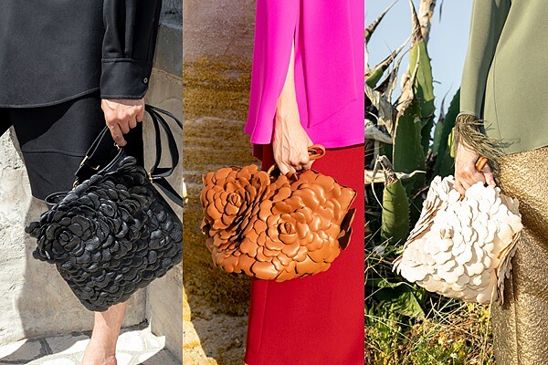 在設計上擅長使用花卉元素的Valentino創意總監Pierpaolo Piccioli,2021早春延續了2020秋冬的立體花朵包款,有別於秋冬系列所出的小型肩背包款式, 2021早春則是將花朵層層堆疊製作成容量較大的手袋,搭配著黑色、白色及焦糖色等純色系為基調更顯得大器有型!