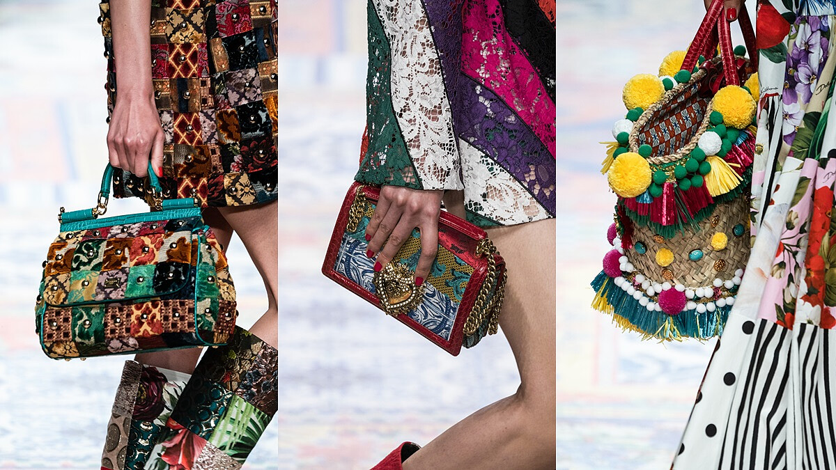 以「Patchwork di Sicilia」為2021春夏系列主題,設計師們從喜愛的西西里島擷取靈感,將當地悠久的歷史文化轉為創作的養分,透過精緻的拼接工藝,展現Dolce & Gabbana獨有的迷人氣質。配件部分延續服裝的拼貼手法,一款又一款的繽紛提袋成功吸引賓客目光。