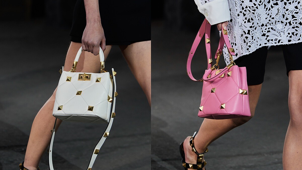 你沒看錯!因為疫情的關係,Valentino首度將大秀選擇在品牌發源地米蘭舉辦,創意總監Pierpaolo Piccioli延續品牌既有的浪漫主義,在本季春夏系列,以放大作為設計手法,把大家熟悉的Rockstud鉚釘包變大。