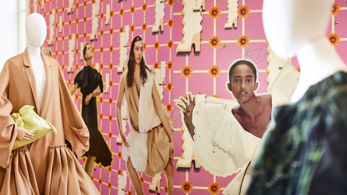 「只要用創意突破傳統時裝表演的框架,就可以有無盡的方式去展示時裝設計。」由創意總監Jonathan Anderson攜手與時尚創意工作室M/M(Paris),還有英國藝術家Anthea Hamilton共同打造的“牆上時裝秀”,便是將事先拍攝並印製好的1:1實際尺寸形象畫報,貼在由Anthea Hamilton為品牌特別特地量身訂製的花卉+靴子拼貼壁紙,帶領觀眾投入一場跳脫傳統時裝秀的感官體驗。