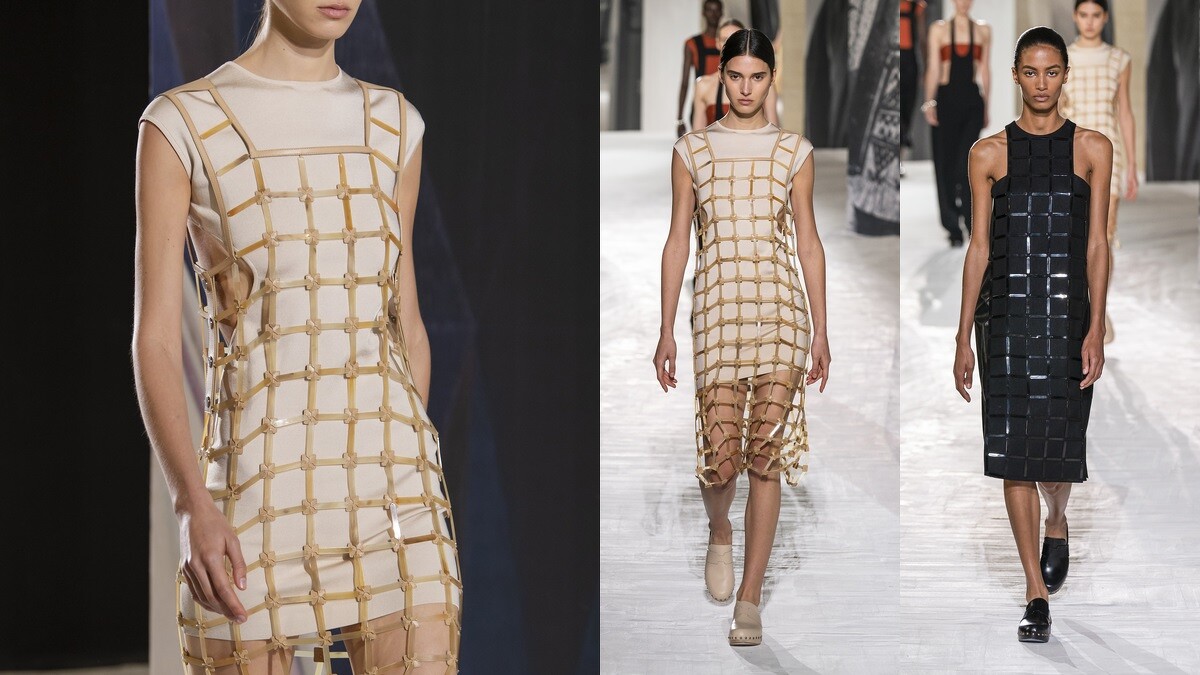 比起大膽創新,Nadège Vanhée-Cybulski在本季更強調服裝的實穿性,透過品牌引以為傲的皮革工藝,點亮服裝的細節處,像是服裝滾邊處理、洋裝上的裝飾,以及有如漁網的編織設計。還有近年人氣的Bra Top,在本季也換上皮革材質亮相,為女性添加率性、幹練的氣場。