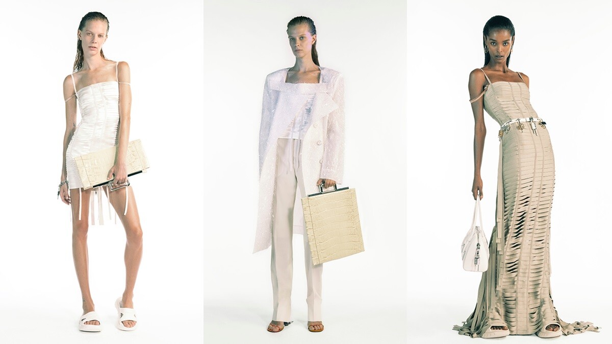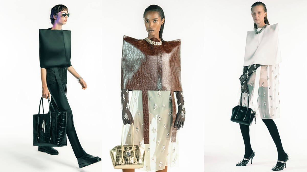 從品牌過往的經典設計出發,2021春夏系列以Hubert de Givenchy著名的流線型剪裁設計為靈感,在配色上選用柔和的米、白大地色調,搭配嵌有金屬配飾的皮件,於極簡的造型上,增添一股酷帥的街頭感。