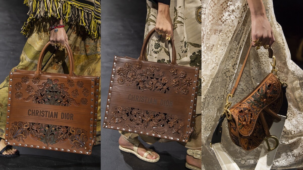 經典Book Tote托特包與Saddle馬鞍包有了全新生命,Dior在本季運用精緻燙印雕花工藝,為明星包款換上嶄新樣貌,賦予包款濃郁的民族風情。