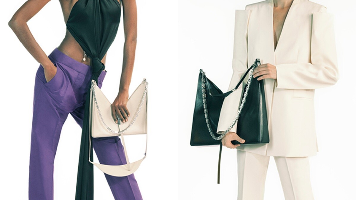 創意總監Matthew M. William上任後的Givenchy首場大秀,2021春夏系列出現大量的山型設計,像是服裝上身的墊肩又或是模特兒手上的全新山型包,如英文字母M造型,搭配搶眼的水鑽皮革鍊帶,絕對讓人眼睛為之一亮。