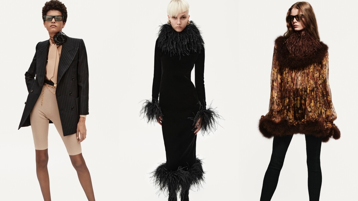 從白天走向黑夜,在這一望無際的沙漠中,模特兒一個接著一個踏著細沙出走。本季,Anthony Vaccarello除了著重在簡約、無拘束的輪廓剪裁下,更專注於事物的本質,好比1960年代末發現的厚身平織布料,不但誕生於充滿變幻的年代,也恰巧與這動盪的時刻有著微妙的關聯性,因此作為回應,Anthony Vaccarello設計了多套追求舒適與自信的的服裝,好比大口袋的寬鬆外套搭配貼身短褲、飄逸雪紡綴上羽毛流蘇緄邊…甚至還有多套講究俐落肩線的服裝,延伸成為經典Le Smoking全新變奏曲。