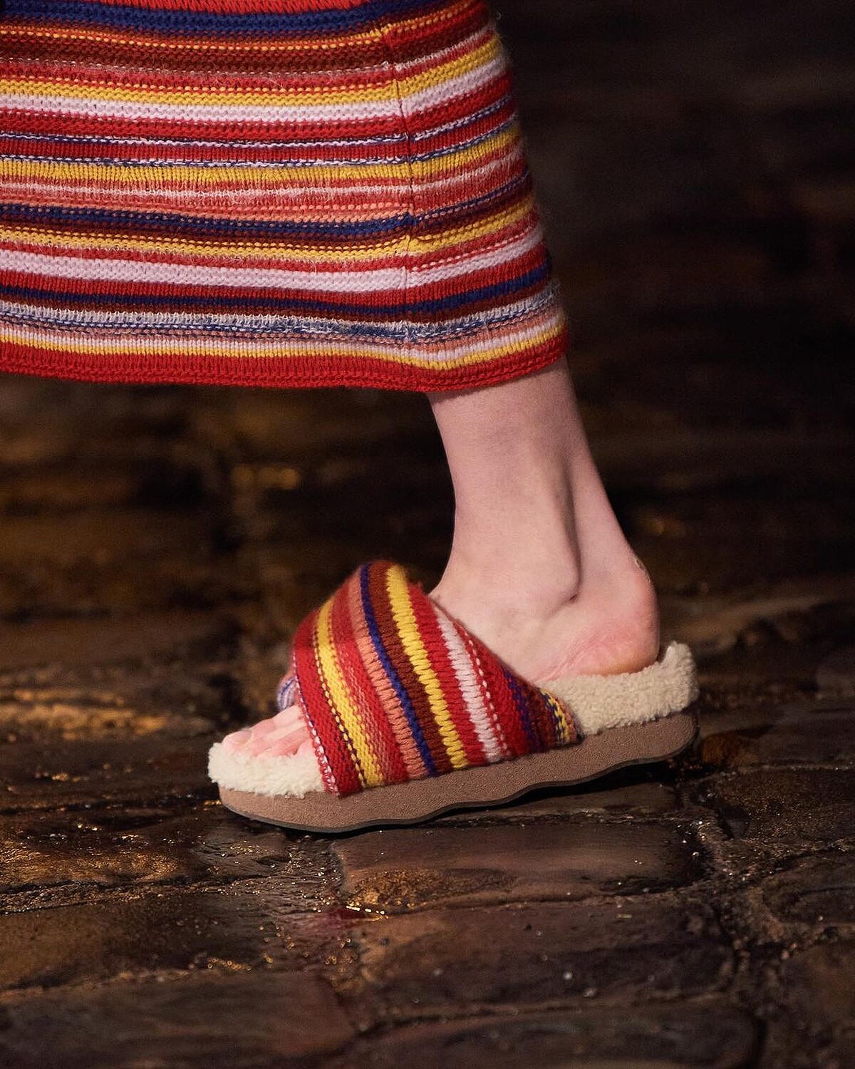 融入設計中的南美文化,除了前述的斗篷輪廓,還有五顏六色的編織面料,面料被廣泛的運用在服裝、包包以及厚底拖鞋上,再次回扣源自Gabi成長背景的靈感取材。