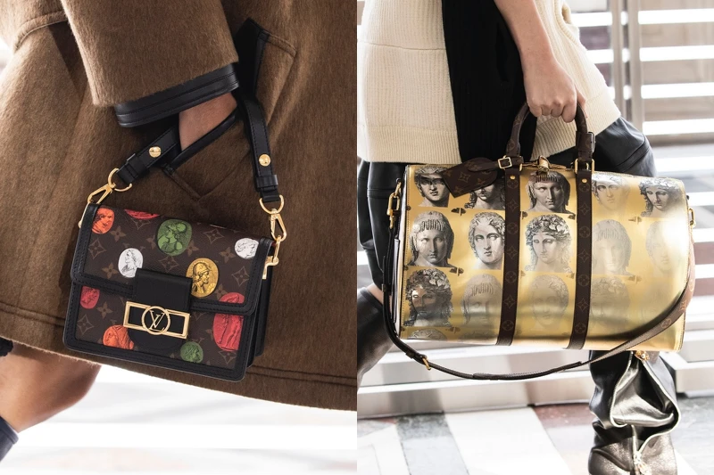 品牌創意總監Nicolas Ghesquière,找上義大利知名的Fornasetti藝術工坊,從羅馬雕塑中擷取靈感,把LV明星商品如Dauphine、放大版的Speedy、PetiteMalle等換上古式雕像及建築圖樣。
