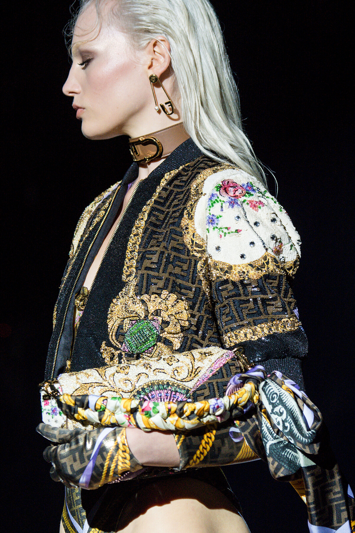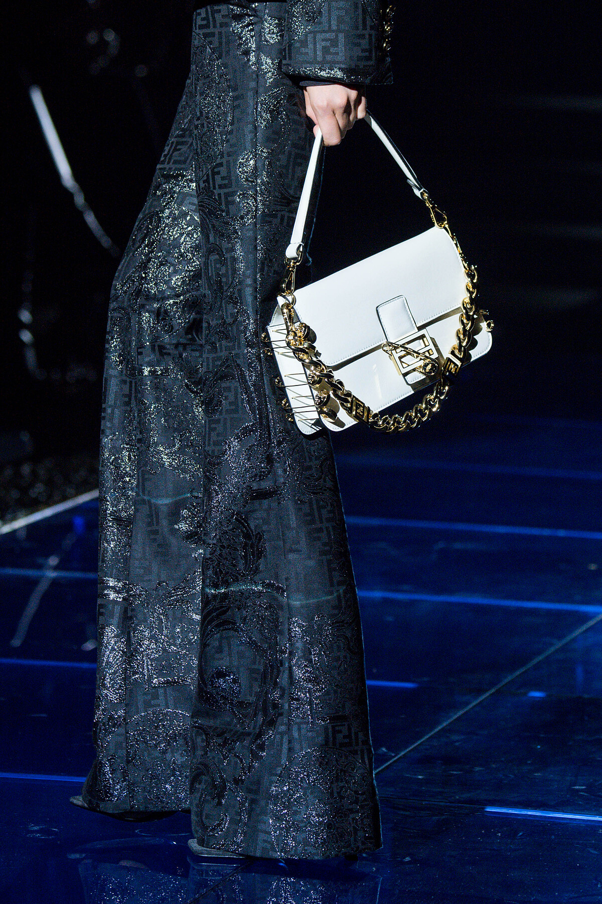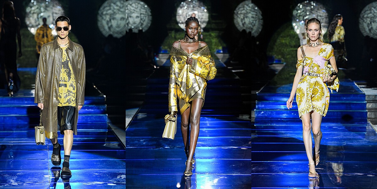 聯名,就好比一個混血兒,你無法猜出這個新生兒會長什麼樣子,但是他卻保有父母兩方的基因特色。這一次的服飾囊括了男女裝,由Kim Jones和Silvia Venturini Fendi負責設計,保有Fendi一貫的優雅版型與剪裁,在Versace富豪金的演繹下呈現出截然不同的風貌。