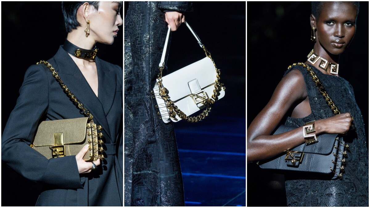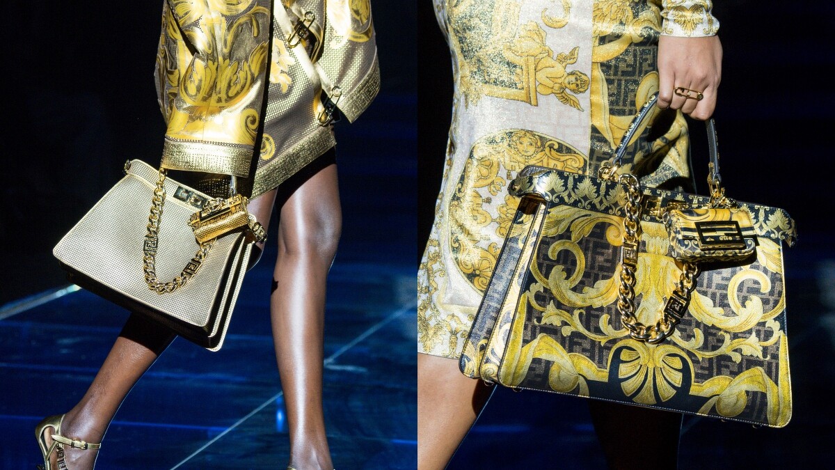 2022春夏米蘭時裝週最大亮點,就非Fendi X Versace兩大品牌的聯名《Fendace》莫屬了!《Fendace》系列針對Fendi的經典包款Peekaboo手提袋、Bagutte腋下包以及Sunshine托特包,添入Versace的基因特色,賦予包包有別以往的高調奢華風格。