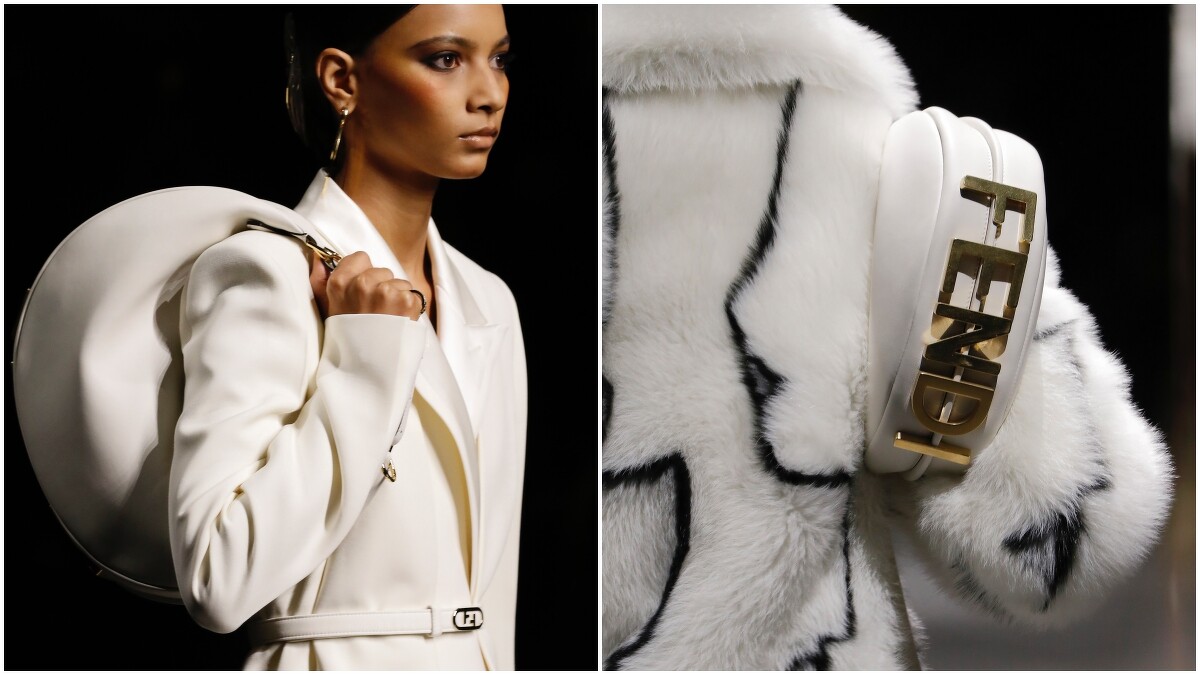 而在Fendi自己2022的春夏發表會上,Kim Jones參考了過去藝術家Antonio Lopez曾為品牌設計的圖騰,為Bagutte、Peekaboo、Fendi First換上新色。除此之外,Fendi推出一款全新的半月型腋下包,滑順的圓弧曲線,簡潔俐落,僅在包包的底部以品牌名稱字母作為裝飾,並且推出大中小以及迷你,各種不一樣的尺寸。