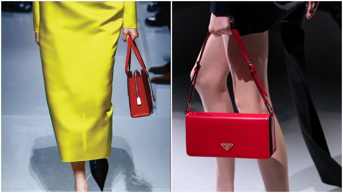 Prada這兩季的時裝秀上,除了推出新款式的包包,顏色更是品牌主打的重點。而在2022春夏秀上,Prada選擇了紅色作為新一季的包包代表色,熱賣的Cleo包與其他方包皆換上紅色漆皮材質。