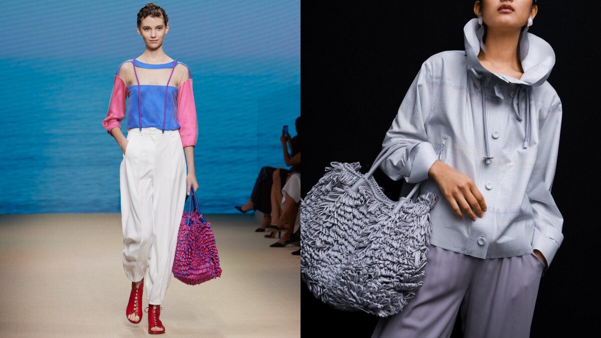 2022春夏Giogrio Armani先生設計了一款圓潤可愛的彩球包,行走之間,包包自帶律動感效果,營造出不一樣的春夏活潑特色。
