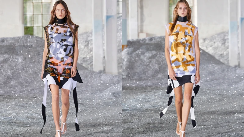 本季發會表上出現了許多各式各樣的迷彩印花,有別於過往看過的迷彩圖騰,Burberry特別將迷彩做以對成的樣式,製成風衣、洋裝、西裝外套不一樣的服飾。