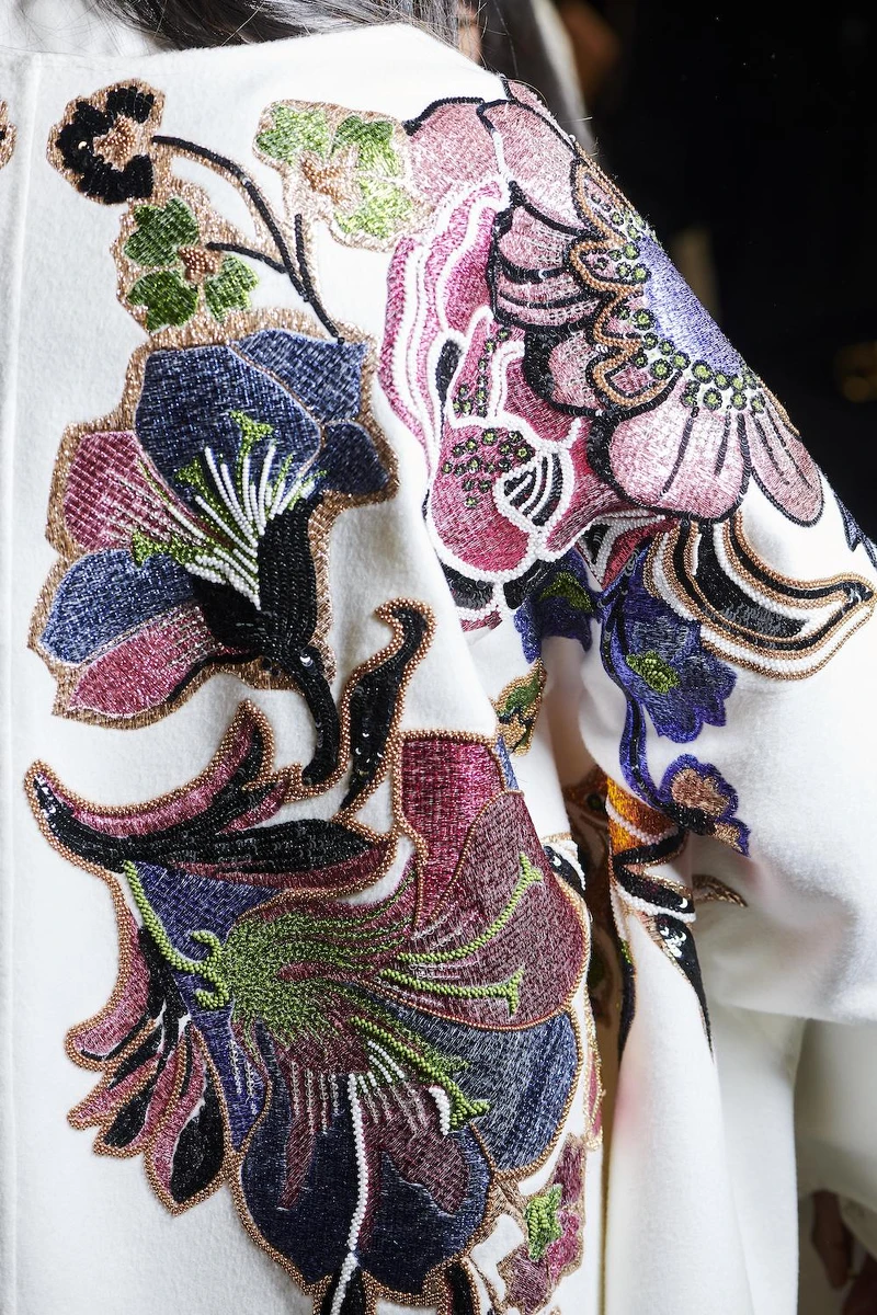 而浪漫至上的Pierpaolo Piccioli,當然不會在白花就收手,在2022春夏發表會上還有其他許多絢麗的刺繡、印花花卉服飾。