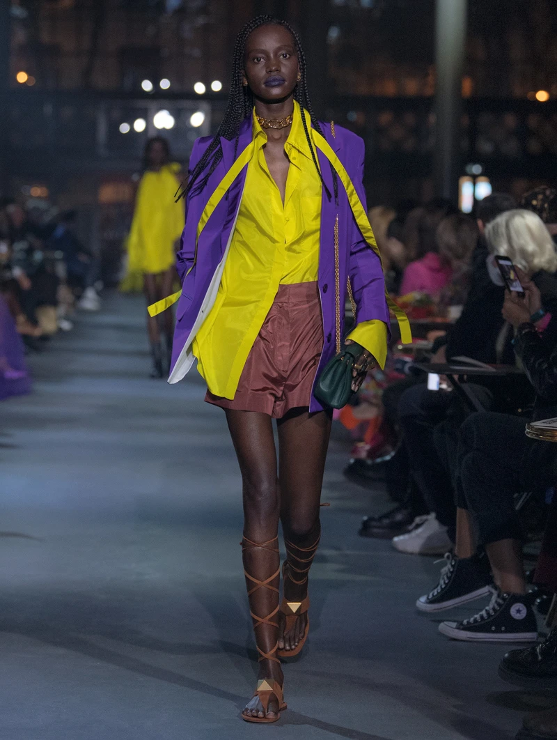 本季Valentino發表會上宛如彩虹一般,什麼顏色都有,並且充斥著各式各樣的花卉、動物紋印花和撞色套裝,滿足各種不同風格的時尚迷。
