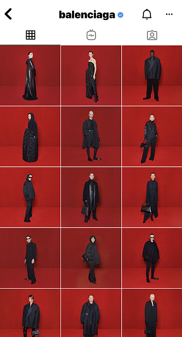 針對2022夏天,Demna Gvasalia一共端出了64套造型,邀請到各界品牌好友、模特兒走上紅毯展示,而從Balenciaga的官方Instagram便不難發現,本季主打色是紅毯上最受歡迎的黑色。