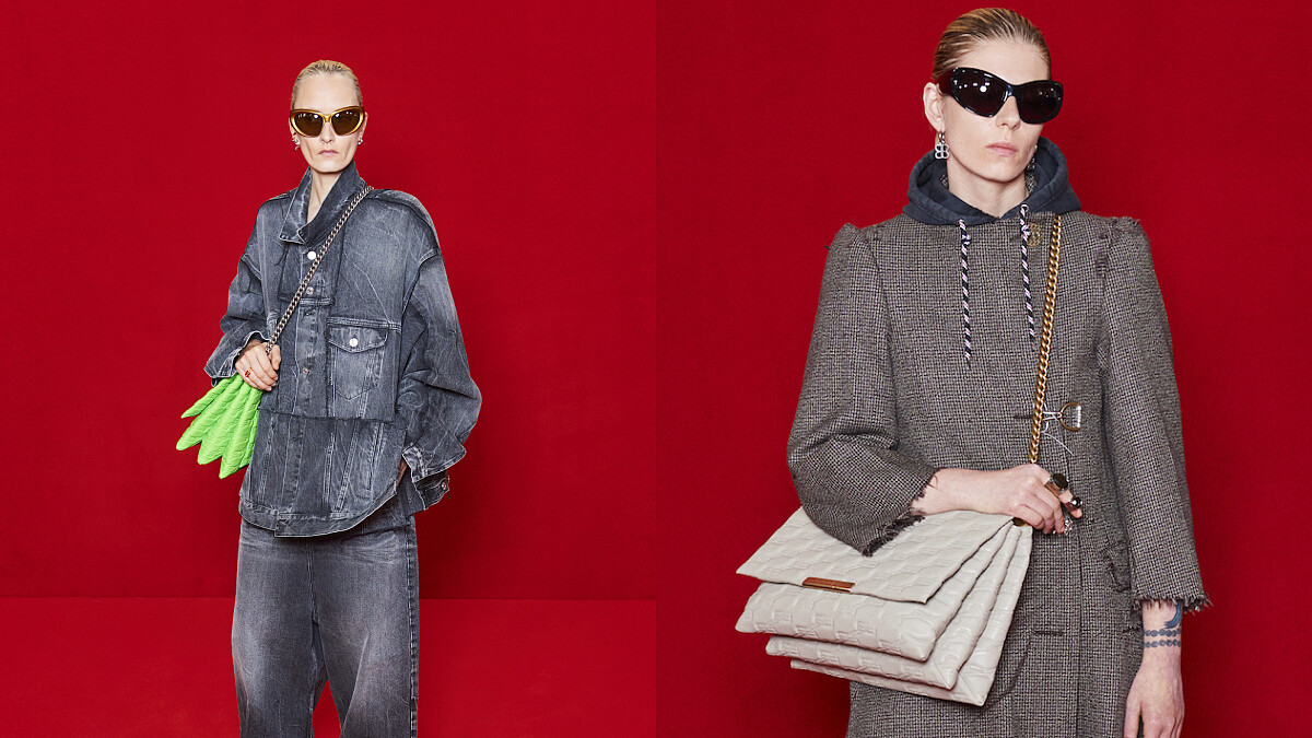 另一款則為三個包包串連在一起的Triplet肩背包,以BB logo重複壓印的皮革製作,配上金屬鍊條背帶,展現Balenciaga一貫的個性時尚。