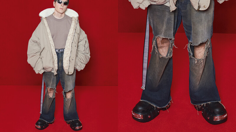 而長年和Balenciaga合作的Crocs,本季的新鞋款Hard Crocs,厚厚的防水台鞋底鑲上銀色金屬飾釦,讓原本柔軟的橡膠鞋換上一股硬派的歌德氣息。