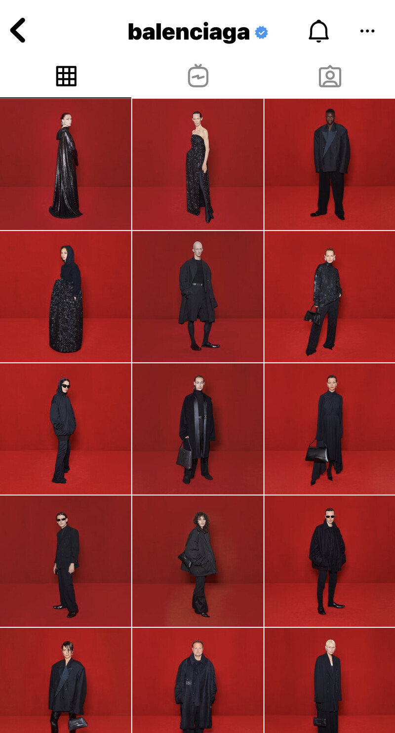 針對2022夏天,Demna Gvasalia一共端出了64套造型,邀請到各界品牌好友、模特兒走上紅毯展示,而從Balenciaga的官方Instagram便不難發現,本季主打色是紅毯上最受歡迎的黑色。