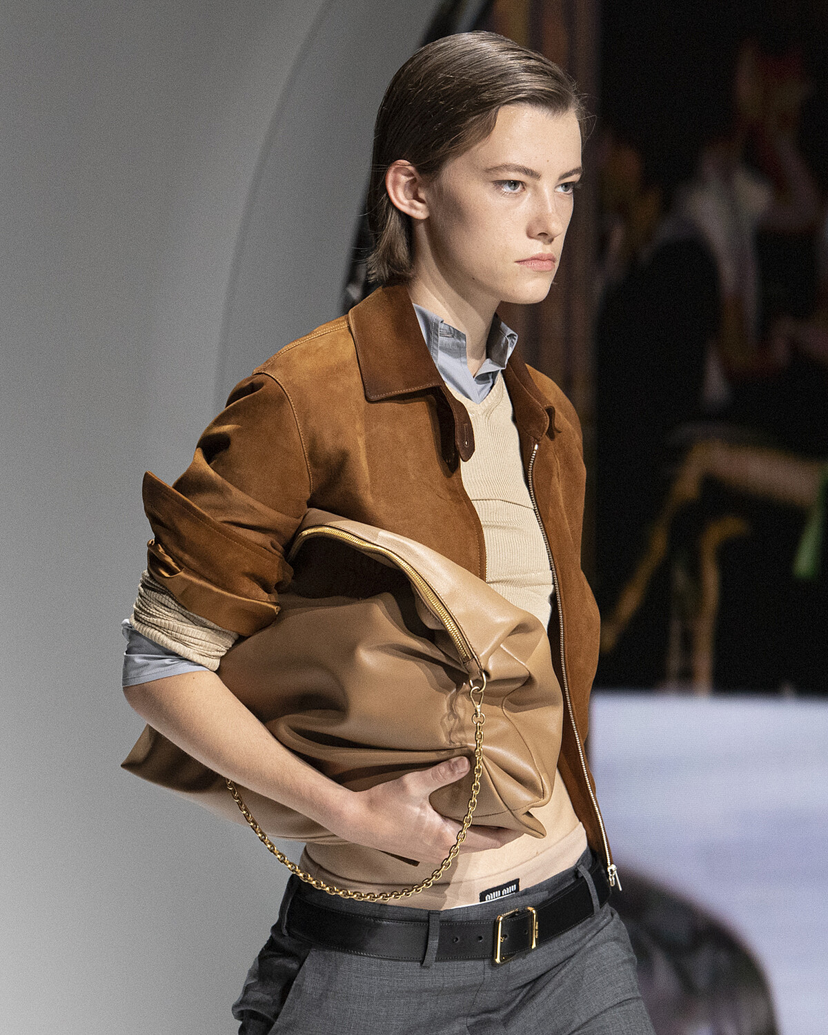 過去Miu Miu多給人一種夢幻的公主風格,撇除服飾不說,在包包的設計上今年亦跟上簡約風格——柔軟的皮革大包,展現出另一種隨性的時髦態度。