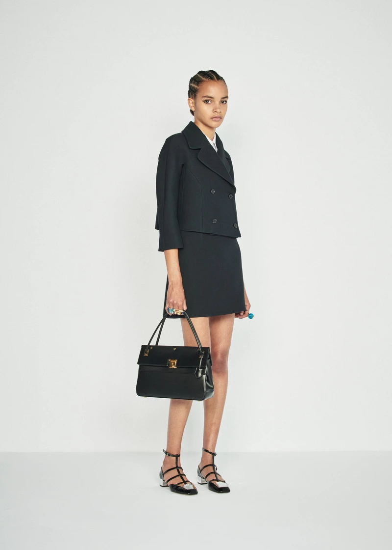 另一款簡約外型的還有Dior這一款初次登場的方形手提包,從側邊來看,包包的外型宛如一座迷你帳篷,簡單的金色扣飾點綴,一展都會女性的俐落個性。
