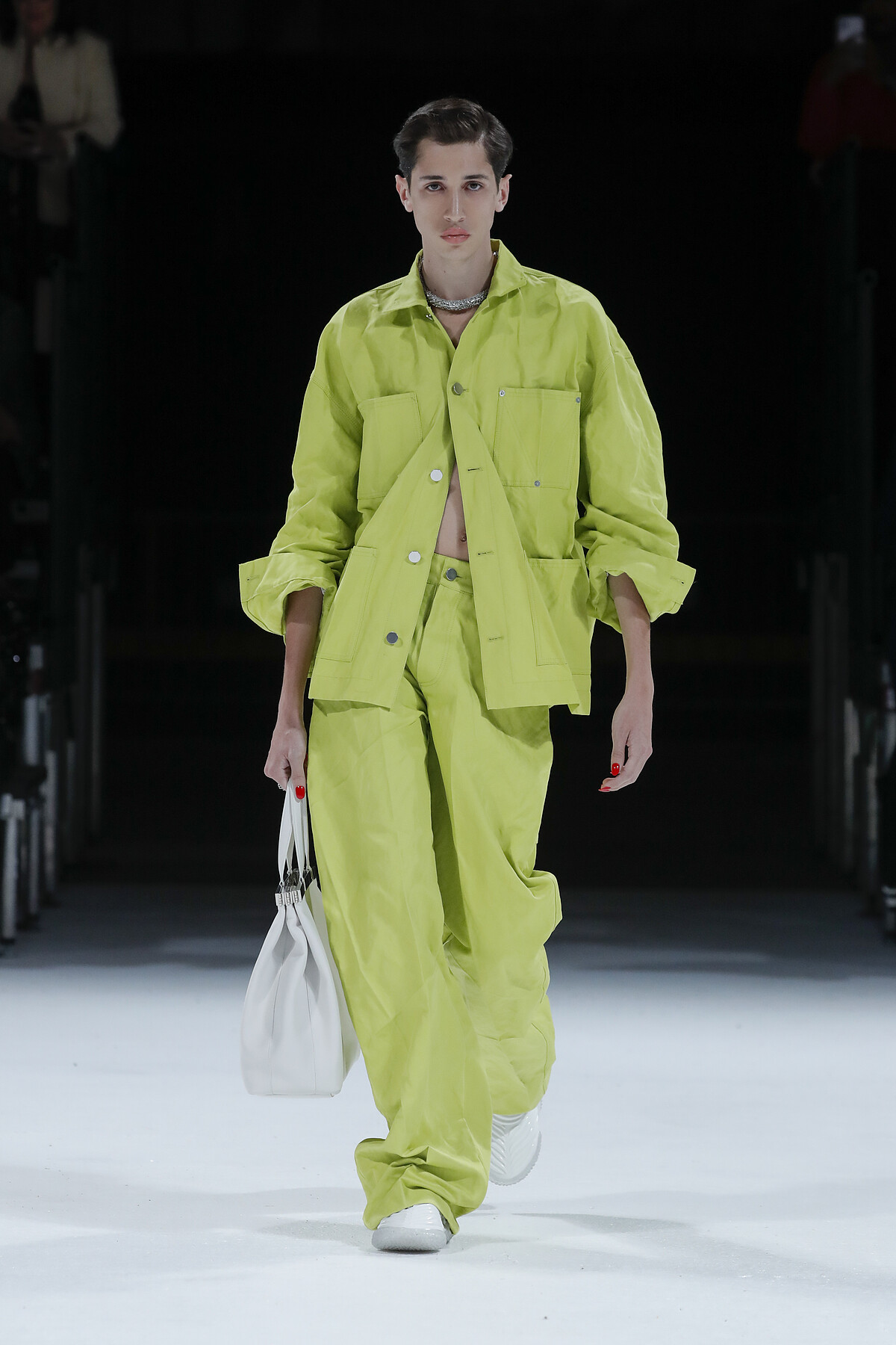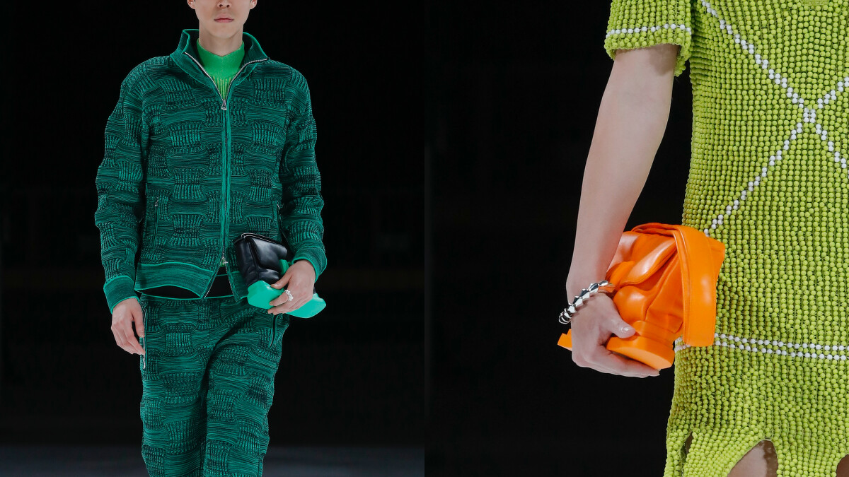 這幾年開始,Daniel Lee開始大肆地使用綠色,就連品牌的購物紙袋也都換成了綠色,讓品牌的標誌除了編織,還多了「BV綠」,綠色不再像過往一樣的難以親近,反倒變成了很時髦的配色!而在2022春夏系列也可以看到不同飽和度的綠色,並透過不同的面料來翻玩色彩遊戲。